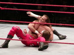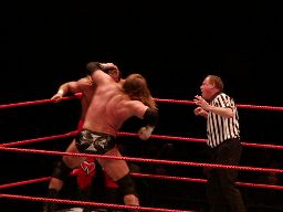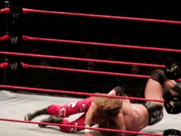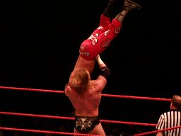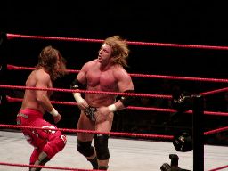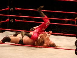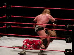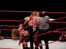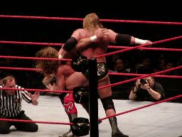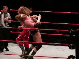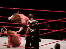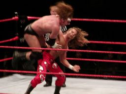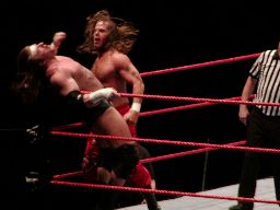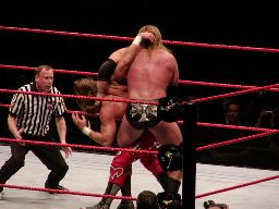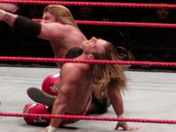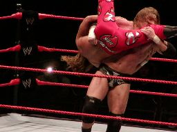 ショーンが逆にコブラツイストに行くがHHHはすくい投げで投げる。