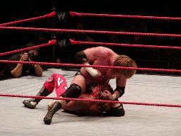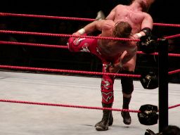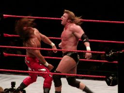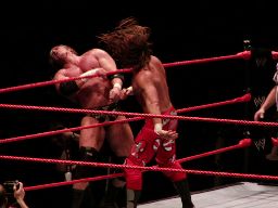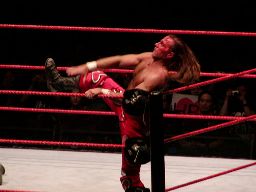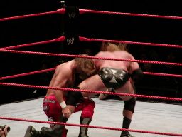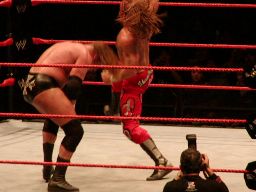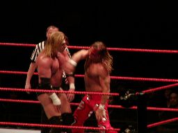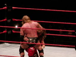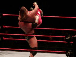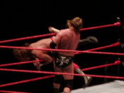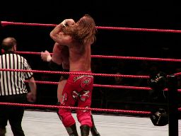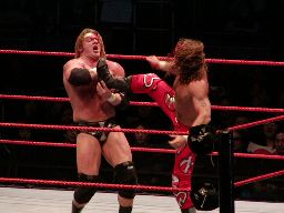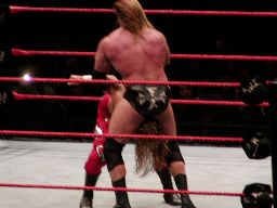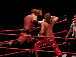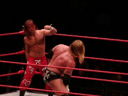 HHHがショーンを場外に落とす。HHHも場外に出てショーンをステップにぶつけようとするがショーン切り返して逆にHHHをステップに激突させる。
