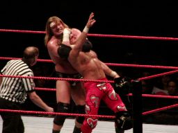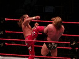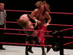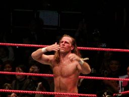 ショーンもう一発スウィート・チン・ミュージック、HHHまたもキャッチ。