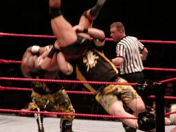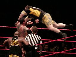 両軍タッチ。ディーヴォンがバティスタにフライングショルダーブロック。