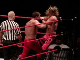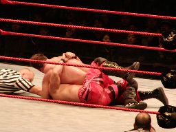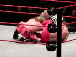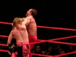 ジェリコすかさずライオンサルト、ベノワもこれをかわす。この試合もダブルノックダウン。