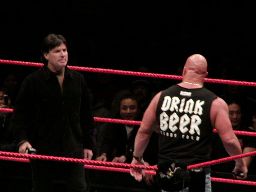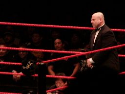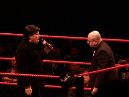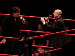 ハワード・フィンケルがintermissionを告げようとしたところにGMエリック・ビショフが入場。