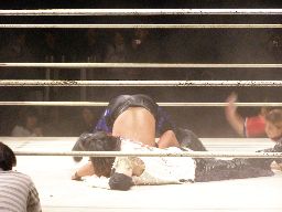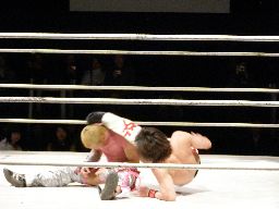 しかし旭は再度逆さ押さえ込み(モダンタイムス?)、カウント2(左写真)。宮本が入る。