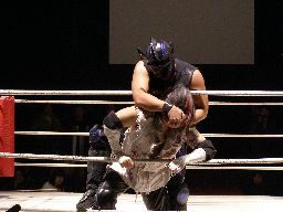 HERO!裏フランケンシュタイナー(右写真)、怨霊場外エスケープ。