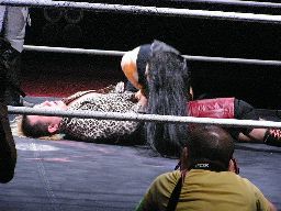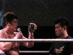 ヨシヒコ猪熊にチョークスラム(右写真)。