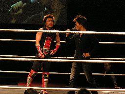 まず大鷲がボックス片手に入場(右写真)。「言っとくが、俺はXじゃないぞ。」いやはや。