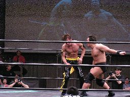 KUDOハイキック2連発、しかし当たりが弱い。3発目高木はクローズライン風にKUDOの足を叩き落す。高木はスタナーに、KUDOブロックしてロープに飛ぶ。