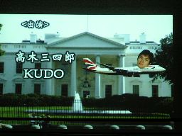 エンディング映像。「アメリカ横断ウルトラクイズ」の音楽に乗せてKUDOを乗せた飛行機の絵がアメリカの観光地を回る(右写真)。KUDOの遠征先はアメリカか?ヒールの道で「現状打破」を目指したHERO!との進化比べだな。