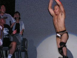 坂井(右写真)は「坂井」コールに「うるさい!裸同然の格好でみんなの前に出される男の気持ちがわかるか?たかだか5、6000円払ったぐらいで!」