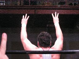 ポイズンは猪熊にラリアットからキャトルミューティレーション(右写真)、猪熊のギブアップの合図をしばらく無視していた松井だが、とうとうギブアップを認める。