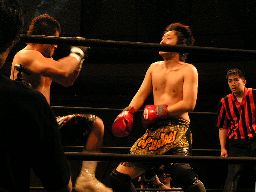 ジェットがMIKAMIにボックス攻撃、鳥羽が入るがジェットはパンチをヒット(右写真)、これで鳥羽がノックダウン。それを見た諸橋が乱入、レフェリーはノーコンテストを宣告。