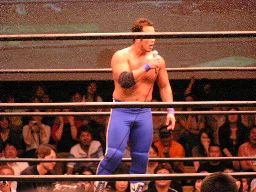 HERO!コーナーに振って串刺しビッグブーツ(右写真)、コーナーを使ってダブルニー。