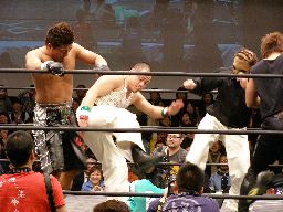 諸橋張り手、フロントキック(右写真)、ストンピング。