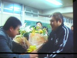 引き続いて初代一宮章一の引退セレモニー(右写真)。