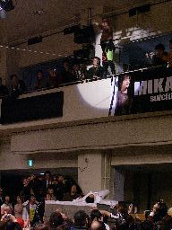 自らはバルコニーへ(右写真)。