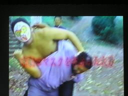 前振りビデオから。中国・北京外語大学プロレス研究会のプロレスイベント。京劇の覆面を付けた大男、これが馬謖(右写真)。相手は項羽と劉邦。