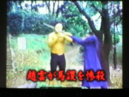 趙雲が馬謖を斬る(左写真)、死体となった馬謖の重みでプレスするという恐ろしい技。当然今回来日する馬謖は別人。