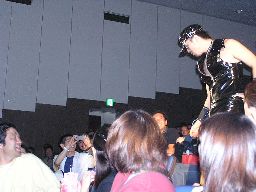 酒井突然コーナーに上ると「おい悪者!後楽園の平和は俺が守る!」(左写真)ヒーロー覚醒か?趙雲もコーナーに上る。両者飛んでリング中央でミサイルキック交錯。すげえ。でもバカだ。
