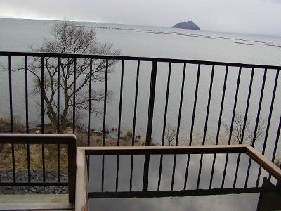 新幹線で米原まで。北陸本線に乗り換えて高月、そこからは旅館「紅鮎」の送迎バス。高月で降りた人全員が同じ旅館に泊まる人だった。部屋から見た琵琶湖の風景。