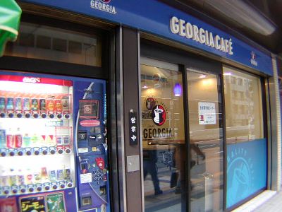 いきなり寝坊。と言っても6時40分には起きたんだが。今日は晴れたら北近畿の城を攻めて、その後山陰という予定。で、寝坊したし天気もよくないんで竹田城や篠山城はやめといて、昨年工事中で見れなかった柏原陣屋に行くことに決定。7時35分、東横イン梅田中津を出発。昨日とは一転の冷え込み。女子高生が制服の下にジャージはいてるよ。梅田なんて繁華街でそういうの見るとは。写真は梅田で見つけた「ジョージア・カフェ」。中には自動販売機とテーブルとイスが。結構中に人がいた。