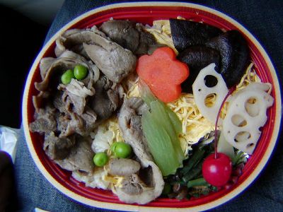 途中の篠山口から乗り込んできた車内販売で「ぼたんめし」購入。