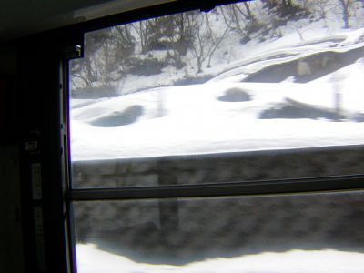 八鹿からはバスに乗って湯村温泉に。80分ものバスの旅。途中の村岡辺りの雪景色。兵庫では一番雪が積もるとこらしいが。