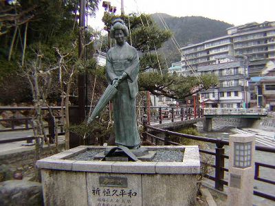 湯村温泉を舞台にしたドラマ「夢千代日記」を記念した像。モデルは当然吉永小百合。それはまだいい。