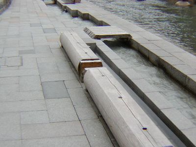 春木川の河川敷の下にも源泉が流れており、歩くと暖かい(素足禁止)。