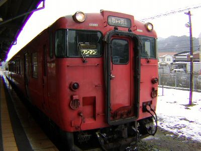 浜坂からは山陰本線。天気がだんだん悪くなって移動するのが億劫になってきた。しかし予定かっちり組んでるから動くしかない。今日は移動の一日だ。我慢我慢。15時32分浜坂駅発。