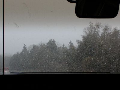 吹雪の中国自動車道。