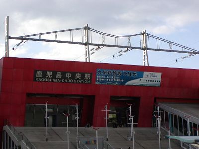 新八代でリレーつばめから新幹線つばめ号に乗り継いで鹿児島中央駅に。この変な形の駅舎は新幹線ホームの終点なのだな。つーことは万が一新幹線が暴走した場合この赤い建物から新幹線がこぼれ落ちてくるわけだ。