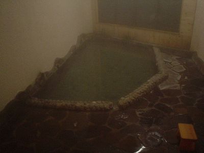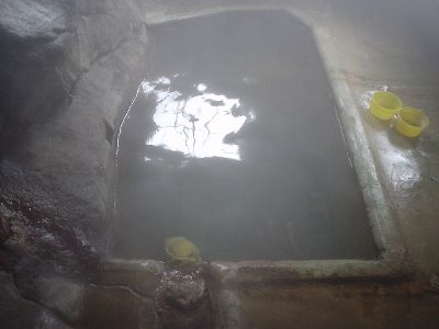 大釜温泉の内風呂。泉質は酸性含砒素硫酸塩泉。よくわかってないんだけどね、泉質とか効能とか。リラックスできればいいのさ、温泉は。でも見た目が変わってたりするとそれはそれで楽しい。