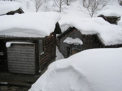 まさに雪見風呂。露天はぬるかった。入ってられないというほどではなかったが。