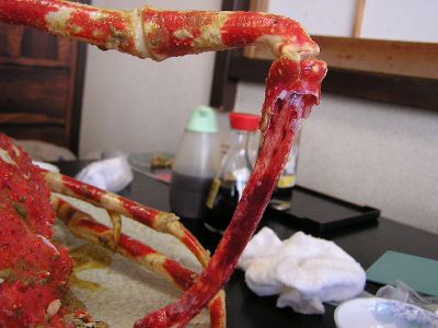 足を折るとべろん、と肉が出てくる。「大味なんじゃないか?」「水っぽいんじゃないか?」とちょっと味にはあまり期待せずにはいったがどうしてどうして。そのへんで食う(ロシア産?北朝鮮産?)ズワイガニよりはうまい。さらにミソがうまい。