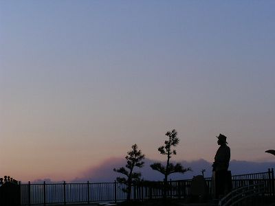 若山牧水の像。撮り終わって下見たら浜辺にはいっぱい三脚立てたカメラマンが。自分は偶然通りかかったのだが夕陽の名所だったようだ。