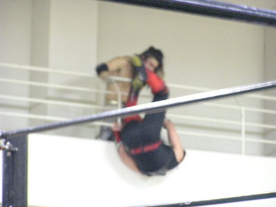 16時過ぎ、バスで会場の金沢流通会館へ。問屋町の中の展示場。帰りのバスを調べたら休日の夜は走ってなかった。18時に試合開始。Samurai!のおかげで最近地方大会見ても「何これ?」みたいな反応はない。むしろ「やっと来てくれた」という反応が多い。もちろん結構ムリして集めたような客もいなくはないが。会場が暗いので「スポーツモード」で撮ってみた。撮れなくはないがブレまくり。観戦記はここ。