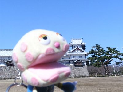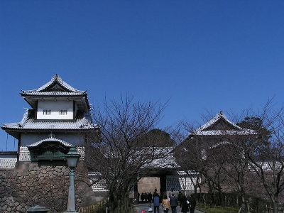 昨日のマッスル観戦記も書き終わらないまま、今日は今日とてDDT金沢大会見に朝一の飛行機で小松空港に。小松空港からは連絡バスで40分、金沢に。いい天気。これはまず金沢城に行くしかない。午前中じゃないといい写真が撮れない建物もあるし。ということで香林坊でバスを降りて金沢城に向かう。