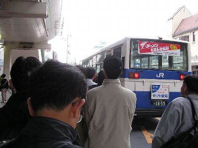 茅野駅前の高遠行きバス停は大行列。ここから約1時間山道をバスの旅。速攻寝る。