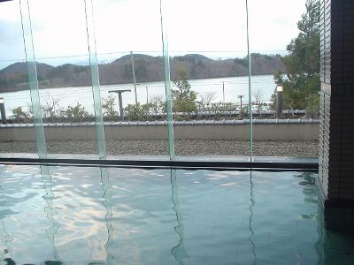 すっかり時期を外してしまったのと、何より風の冷たさにやられ、意気消沈して今日の泊まりの盛岡市・繋温泉「ホテル紫苑」に。大浴場。