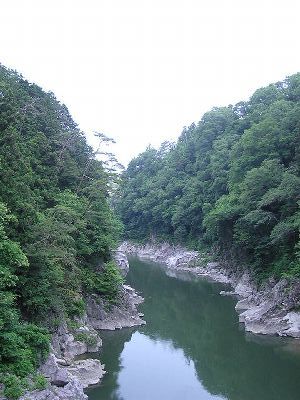 吊り橋から見た天竜峡。天気がよくないのが残念。