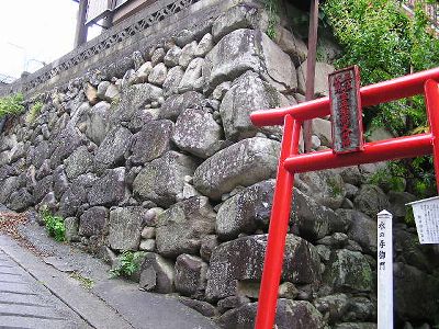 ここも城門跡の石垣だが今は民家が乗っている。