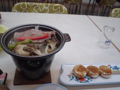 陶板焼きと五平餅が出てきた。五平餅うまい!