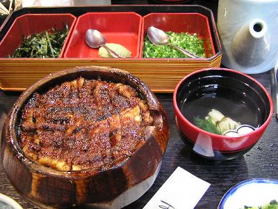 「愛・地球博」を見に名古屋へ。始まる前はほとんど興味がなかったが、始まってみるとなんだか行かないともったいない気がして。新幹線で13時に名古屋駅に着。今日の予定はまずひつまぶしなので地下鉄に乗り換えて熱田神宮前の「あつた蓬莱軒」神宮前店に。凄い列。1時間半待ちらしい。しかし今回はこれも大きな目的なので待つ。途中からは中の「待合室」で。やっぱり「愛・地球博」のついでにひつまぶし、という人が多いのだなあ。自分もそうだが。普段は午後に一旦休むようだが今日はそういうことはないらしい。