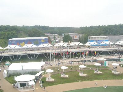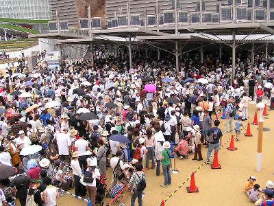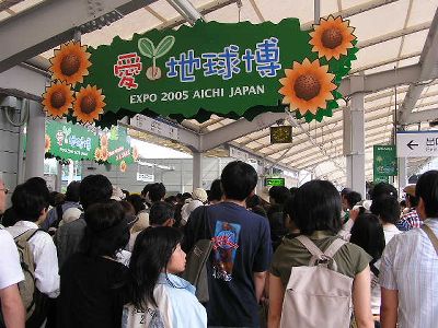 朝6時起床。いよいよ本日「愛・地球博」に。日曜ということでパビリオンの事前予約は一個も取れず。あとは出たとこ勝負だ。まあ「博覧会」で当日行った人間が何も見れないってことはないだろう。7時22分発の「エキスポシャトル」の始発で万博八草駅に。まだそれほど混んではいない。