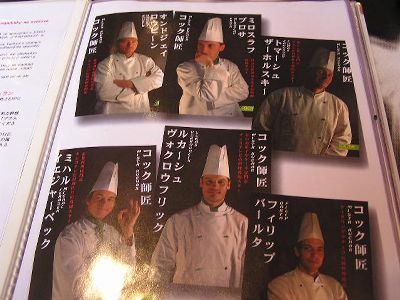 早速入って食事。レストランの壁にはコック師匠と料理の写真が。