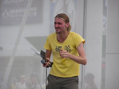 素人をステージに上げて剣を投げる。日本語の喋りが面白かった。