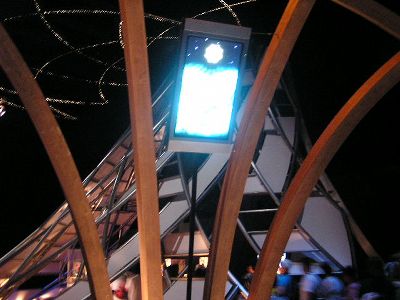 会場を縦断するキッコロゴンドラに。600円。階段から「300分待ち」の日立館前を見てみる。よくみんなおとなしく待ってるもんだ。