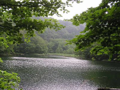 さらに山道を進むと「菅沼」「長沼」という2つの沼へ行く道の分岐点が。「長沼」の方向に行くと道に沿って確かに長ーい沼が。しかしいつまでたっても岸に降りれそうにないので断念して分岐点に戻り、「菅沼」の方に。