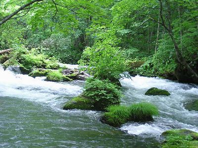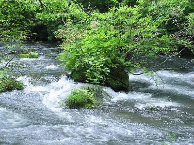中島の上に木が生い茂ってるのが奥入瀬の特徴。