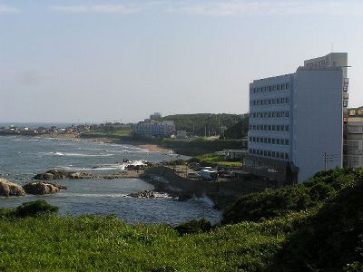 今日の泊まりはグランドホテル磯屋。海に面している。こりゃあグランドだ。